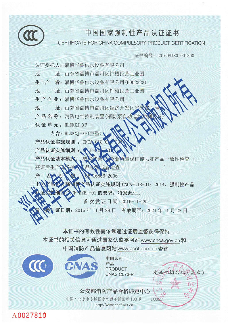 消防自動(dòng)巡檢控制柜CCC證書(shū)